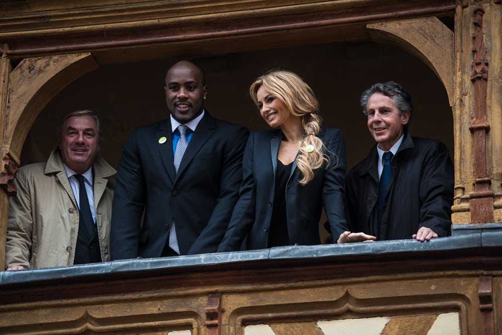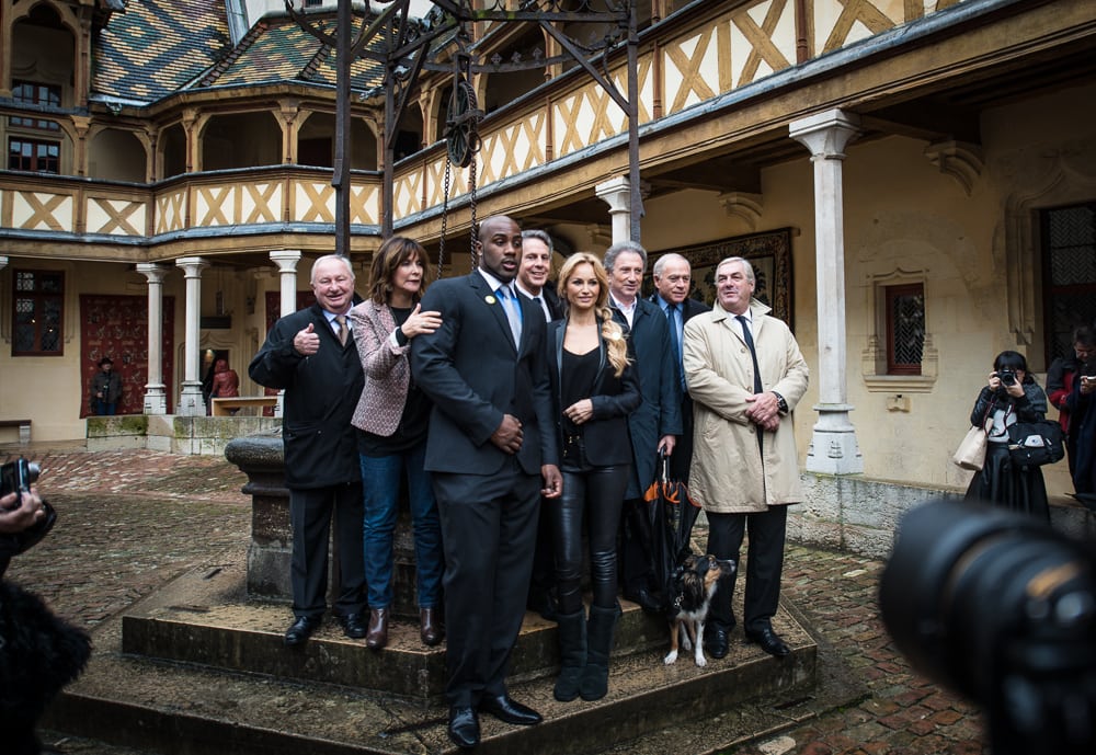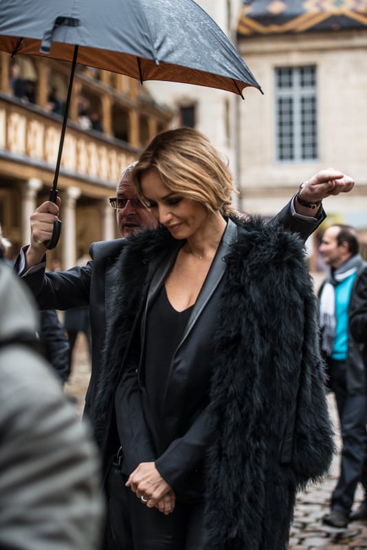 14h55. Adriana (chaussée de “boots”) et Michel Drucker lancement officiellement la 154ème Vente des Hospices. Les stars se sont fait un peu attendre. Les choses sérieuses peuvent enfin commencer.