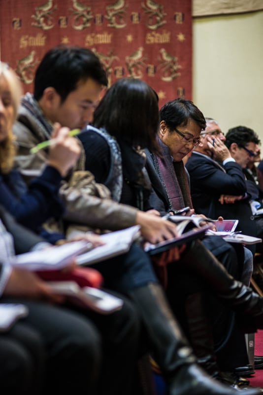 16h05. Après un passage en douceur des mazis-chambertin qui se sont montrés plutôt stables par rapport à l’année dernière, la salle est suspendue aux lèvres d’Adriana… qui se remaquille avec un grand professionnalisme. C’est bientôt le temps des cathédrales et de la pièce de charité des présidents.
