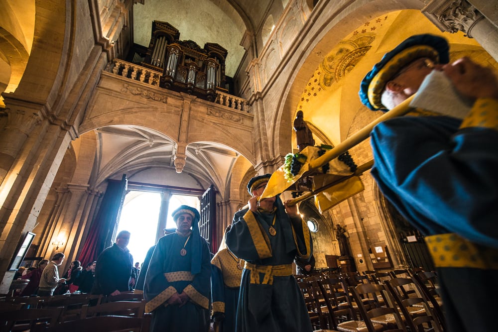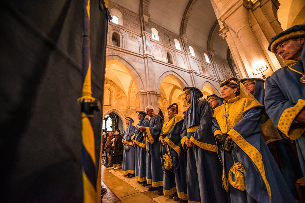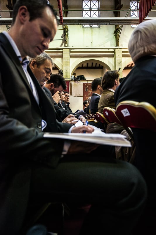 14h15. Les journalistes s’installent dans la salle de presse, les halles sont encore vides et le public s’impatiente. Après une matinée “ordinaire” de Vente des Hospices, ponctuée d’intronisations, d’émissions de radio et de télé, de premières dégustations, Beaune retient son souffle. Mesdames et messieurs, le spectacle va commencer!