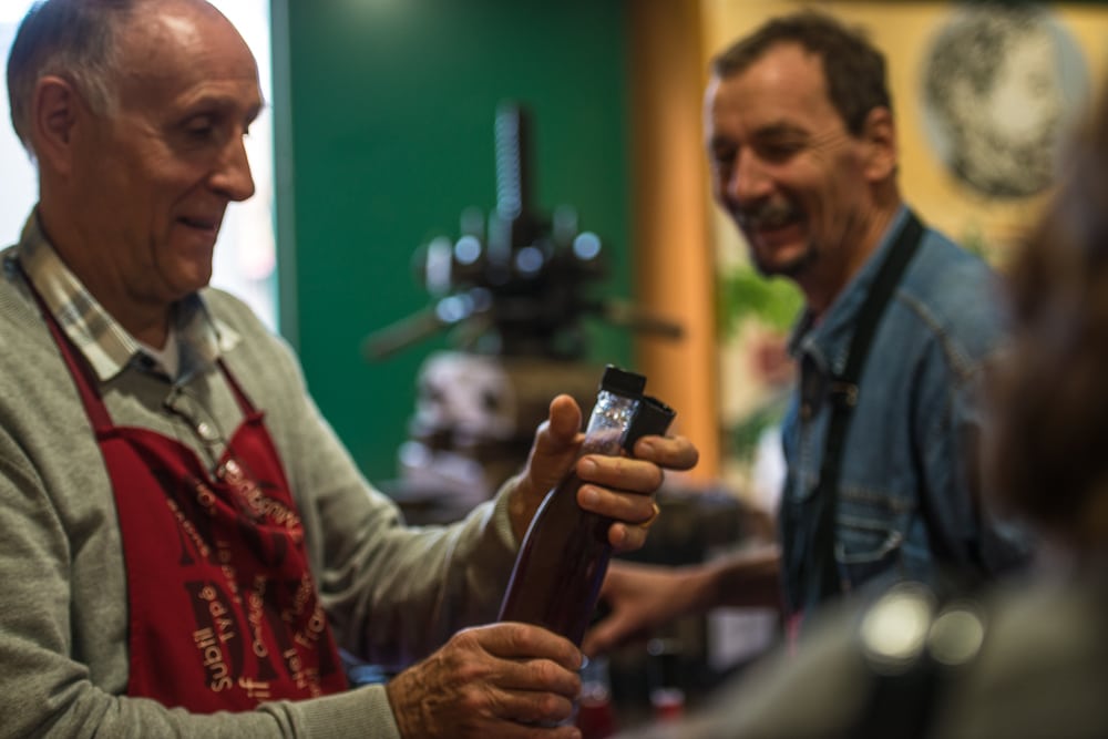 Ceci étant dit, au “vin bourru”, on déguste aussi du vin millésimé, du foie gras du sud-ouest, des fromages bien bourguignons et les merveilleux chocolats de Mickael Azouz. Sous la baguette du chef d’orchestre Christian Delin, la petite musique goûteuse de Nuits est une mélodie douce pour le palais, gracieuse pour l’esprit. Tout le monde en profite.