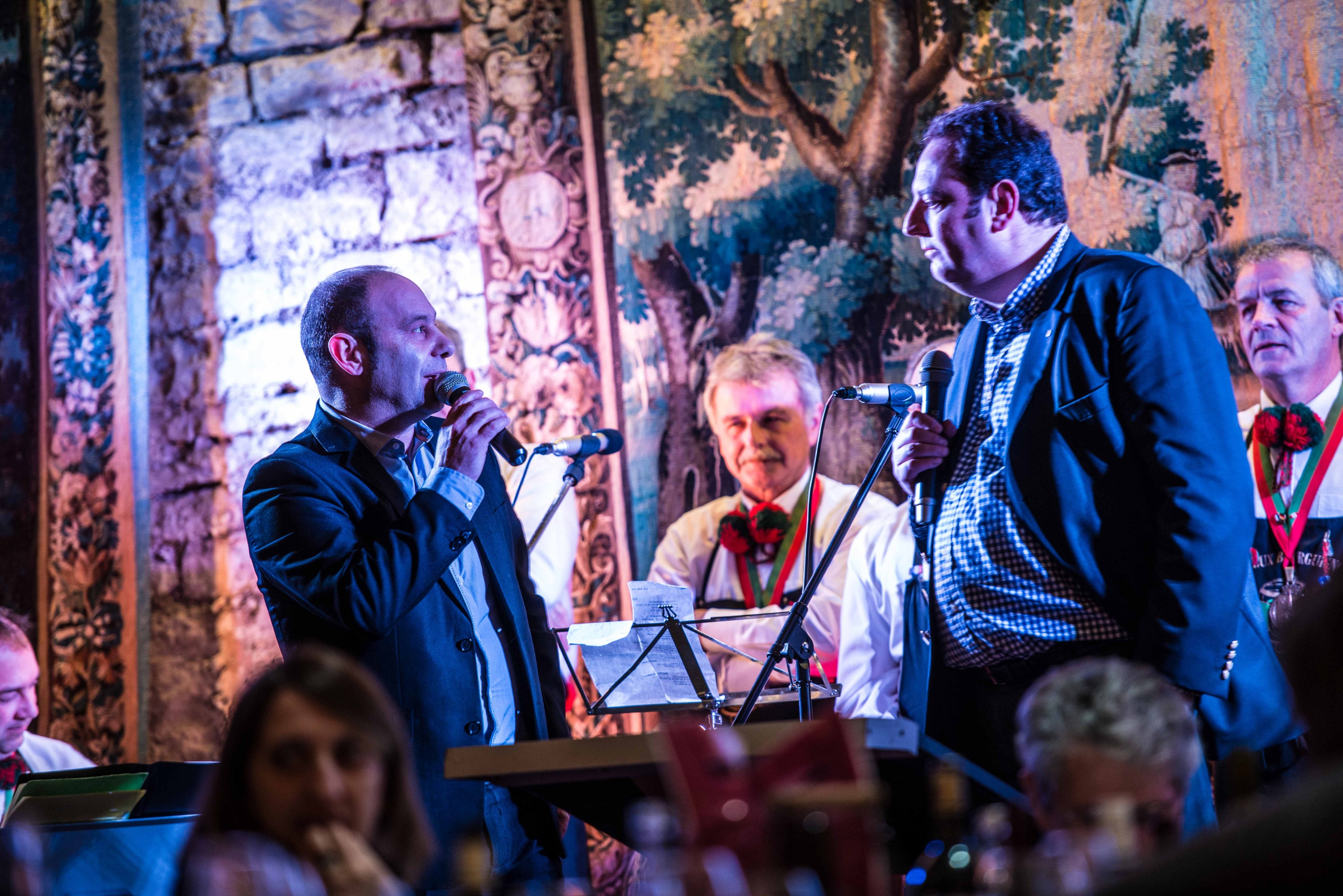 Tout d’abord, il faut un décor historique. Un bastion des Hospices de Beaune chaleureusement préparé pour faire ripaille. Puis un son très identifiable. C’est aux Joyeux Bourguignons qu’il a été confié. Leur répertoire est à lui seul la clé de voûte d’un rendez-vous festif et traditionnel. Le tout sans oublier un public partageur et en phase avec l’esprit de l’événement. Sans lui, une Paulée ne serait pas une Paulée. Celle de Beaune a joué un temps l’Alésienne. Les 140 participants de cette première ont donc mis un terme à un suspens insoutenable autour de cette absence dans la capitale des vins. Pierre-Olivier Coron et tous ses amis ont réparé cela. Chacun y a contribué, à sa manière, en apportant une bouteille de son choix, qu’il avait envie de proposer à sa table ou à une table voisine.