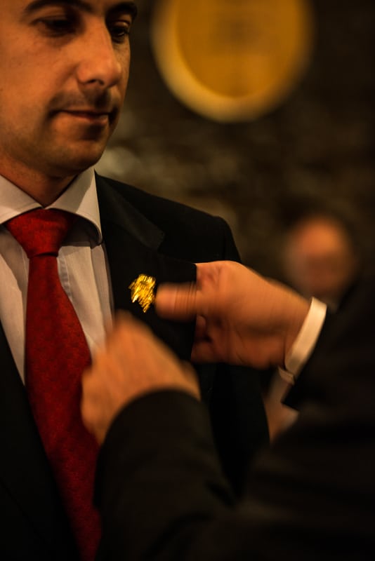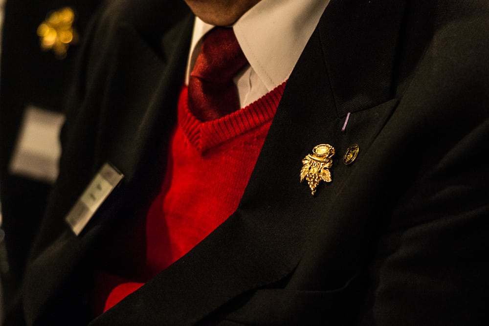 La grappe qu’ils portent est une exclusivité maison. Méfiez-vous des copies! Les membres de l’Union de la Sommellerie Française (UDSF) respectent un rite et une rigueur quasi maçonnique. Ils se reconnaissent entre eux grâce à ce signe. Toute décoration plus ou moins ressemblante relève de l’usurpation.