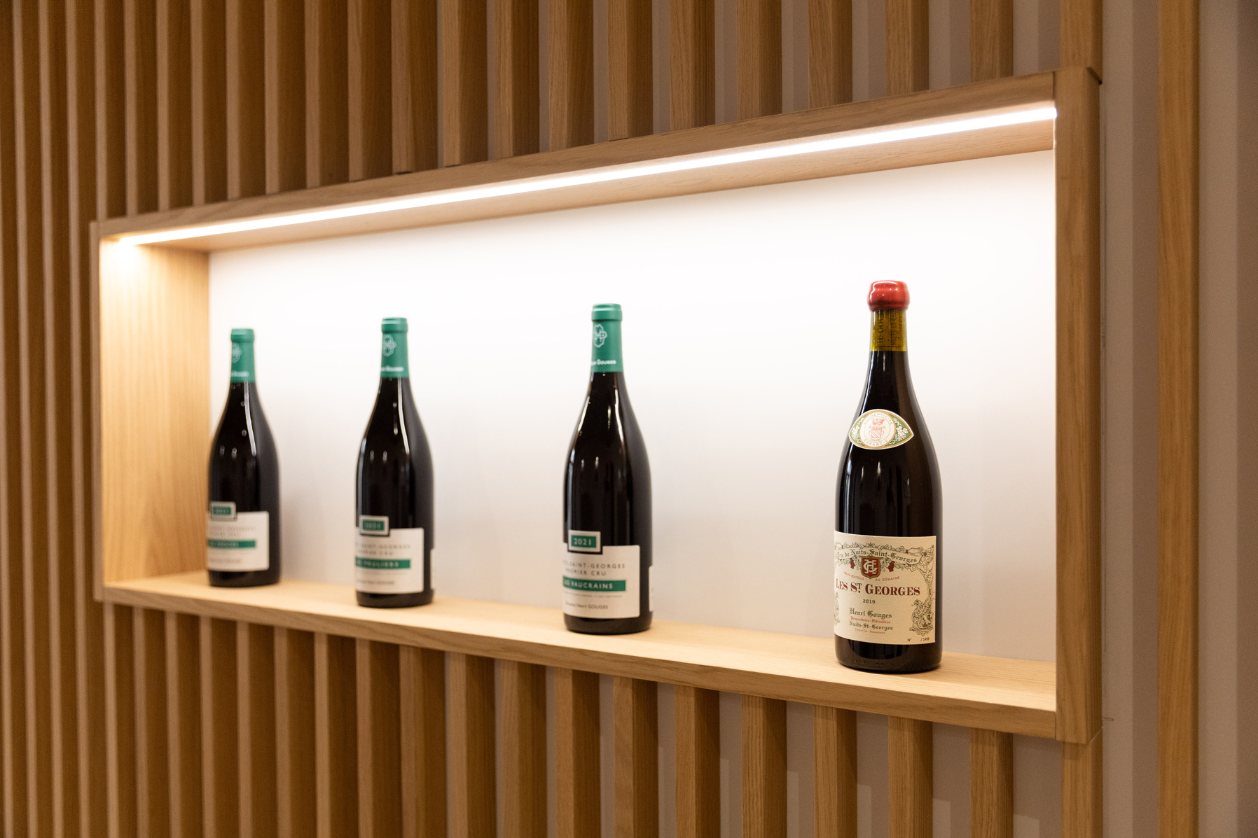Le lieu peut accueillir sans problème une vingtaine de personnes, avec ou sans rendez-vous, du lundi au samedi, autour de trois formules (20, 45 ou 75 euros) très bien calibrées, qui permettent un voyage au fil des climats et des millésimes : 2021 (La Perrière, Les Cailles), 2019 (Clos des Porrets, Pruliers), 2018 (Vaucrains) et, saint des saints parmi les premiers crus nuitons, le Saint-Georges en 2016.