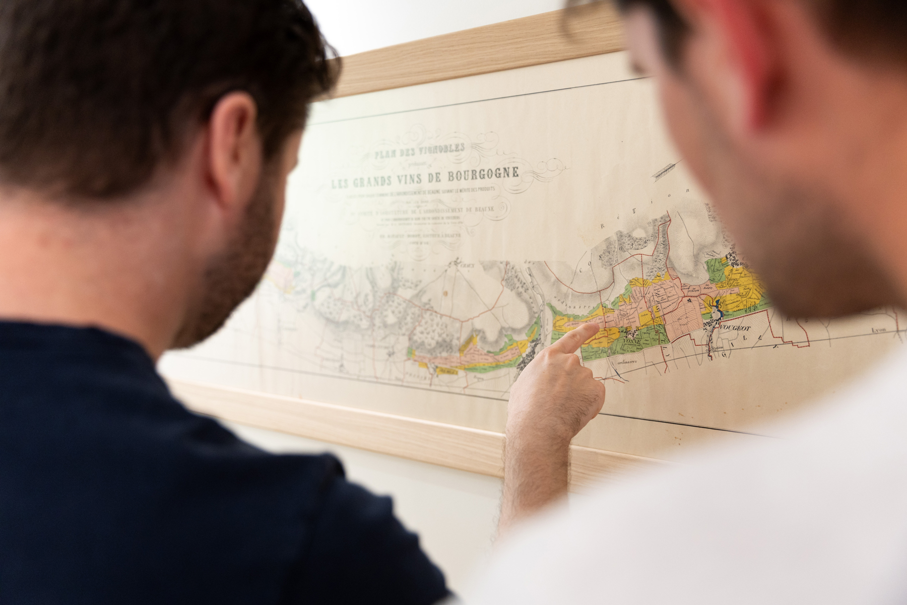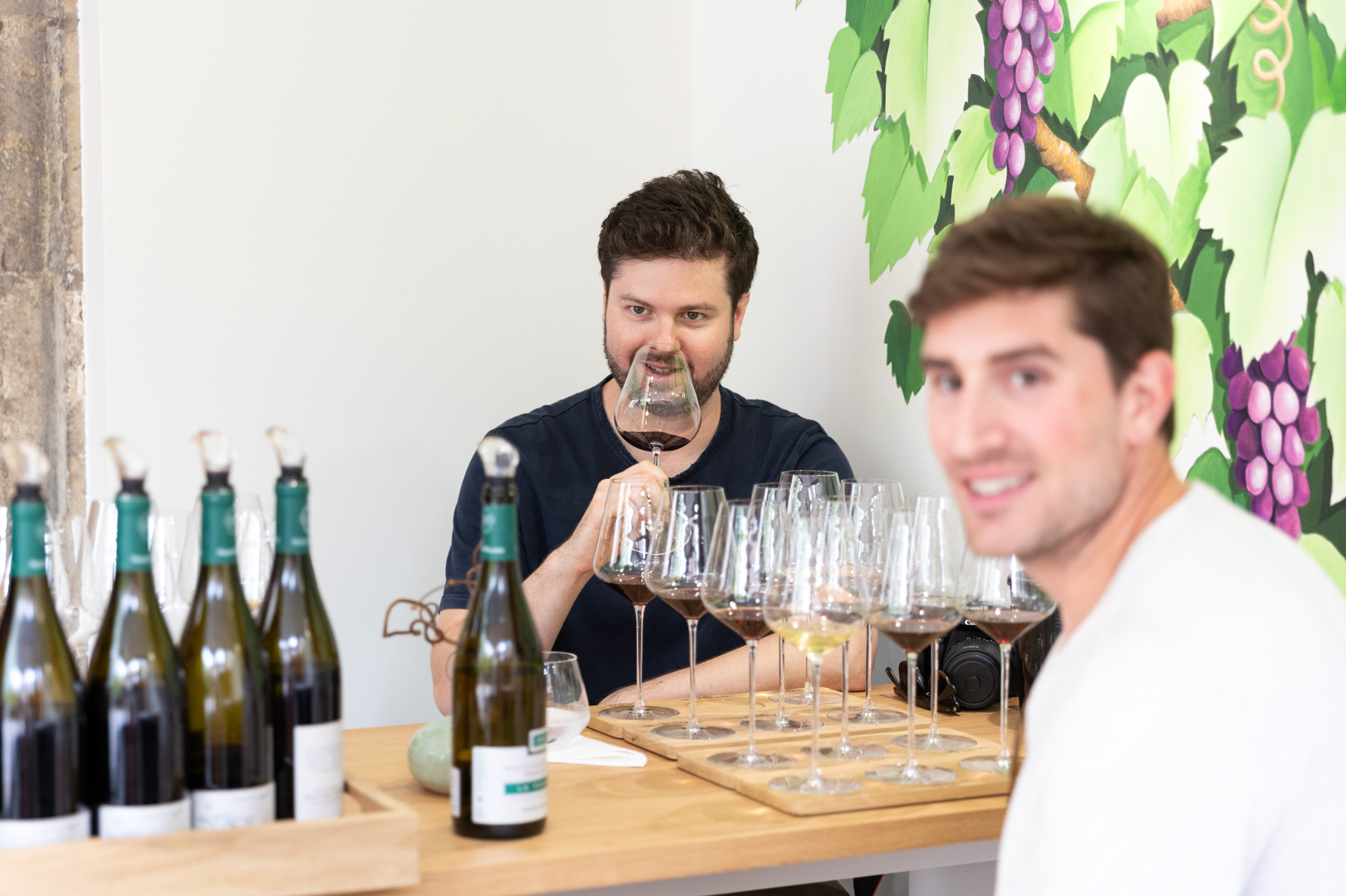 En ce 12 septembre, ce fut justement le cas d’Elliot et Alden. Ces cousins sont venus de Los Angeles pour découvrir la Bourgogne qu’ils voient dans les magazines. Le premier est un amateur éclairé, fan des vins du domaine. L’autre aimerait bien qu’on lui raconte l’histoire du fameux pinot Gouges, ce pinot blanc « mutant » en terres de rouges. Leur trip d’une semaine passe par un pique-nique à Chablis, un saut à la Roche de Solutré, un repas à La Goutte d’Or de Meursault… et si possible une visite de domaine. Pas simple en ce moment…