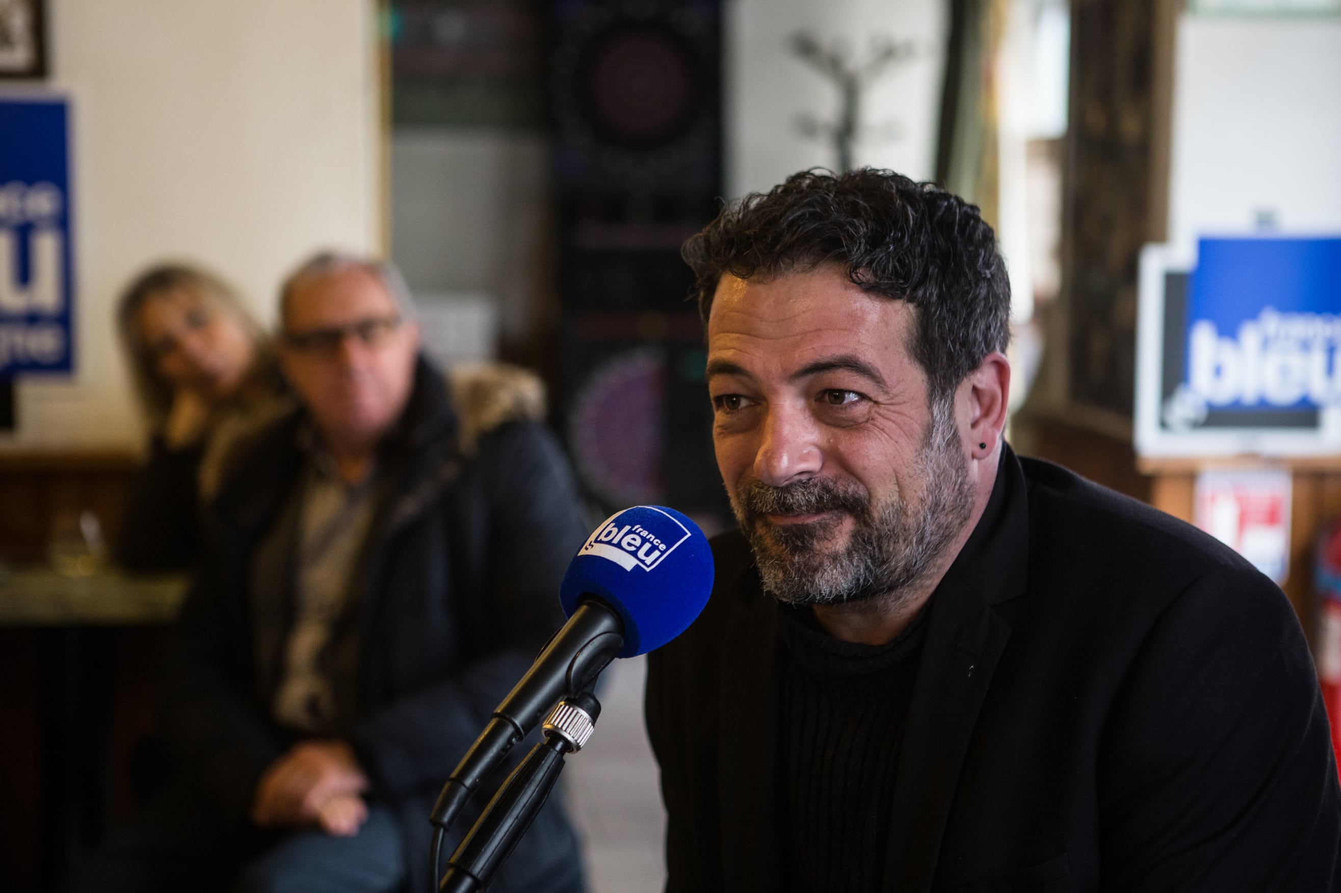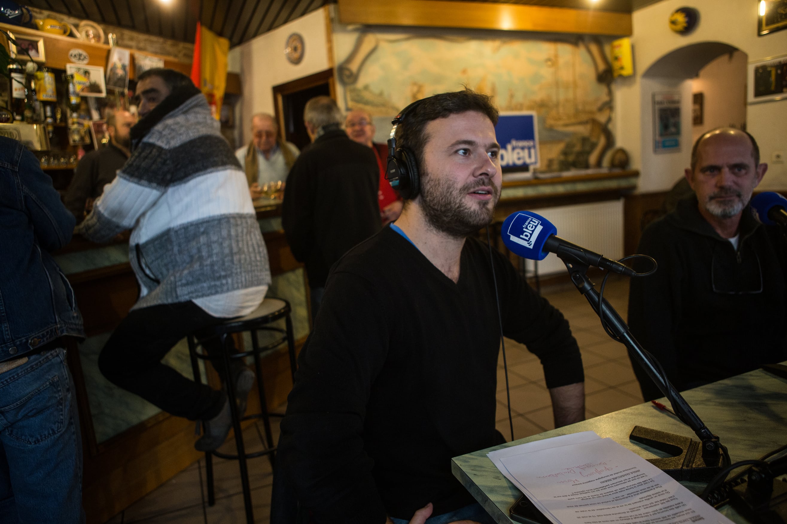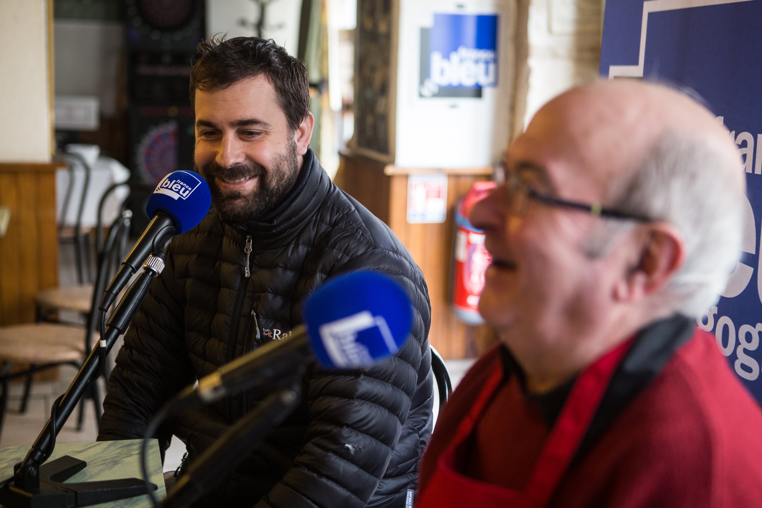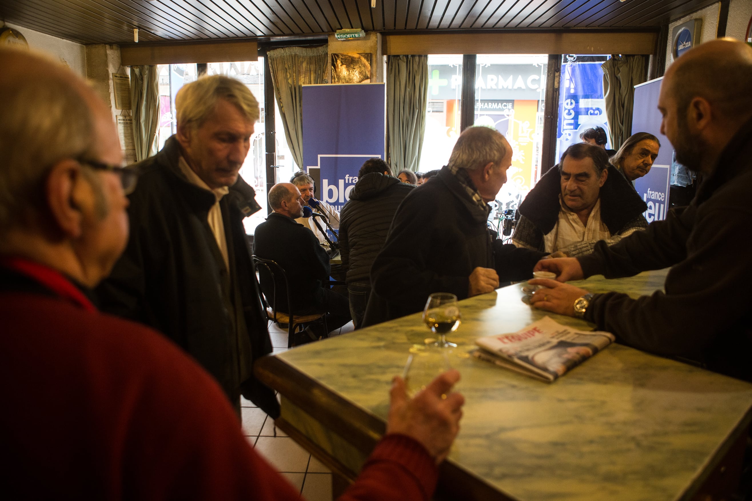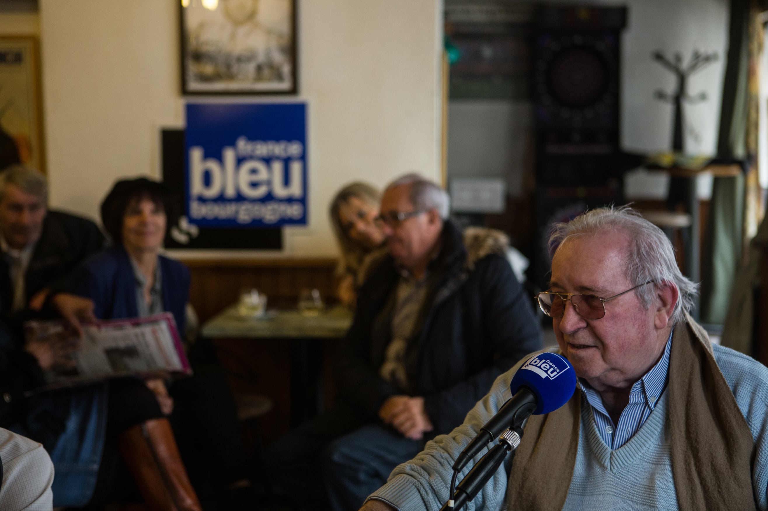 Le Café des bourrus a donc fait main basse sur l’Idéal Bar, rue Monge. En ce jeudi matin frisquet de novembre, il règne d’ailleurs une effervescence inhabituelle autour de sa belle vitrine gravée. Sur l’antique devanture en bois, flotte l’étendard de France Bleu Bourgogne, le temps de cette première matinée d’enregistrement.
