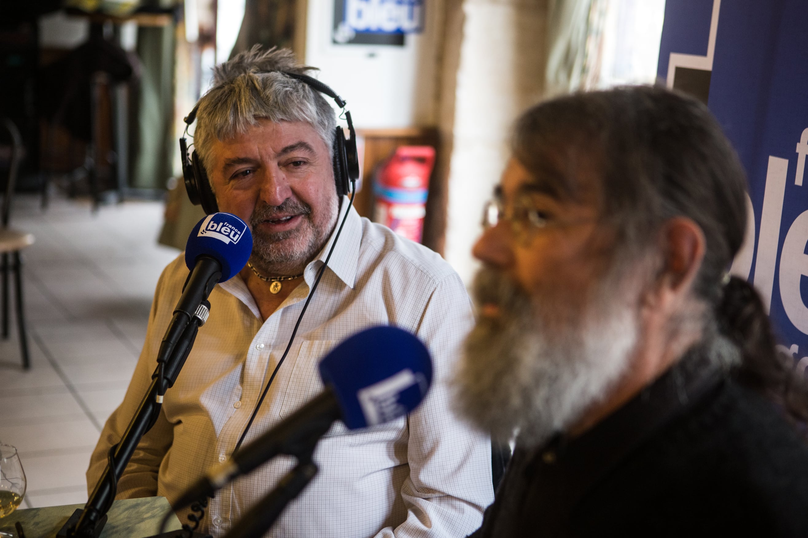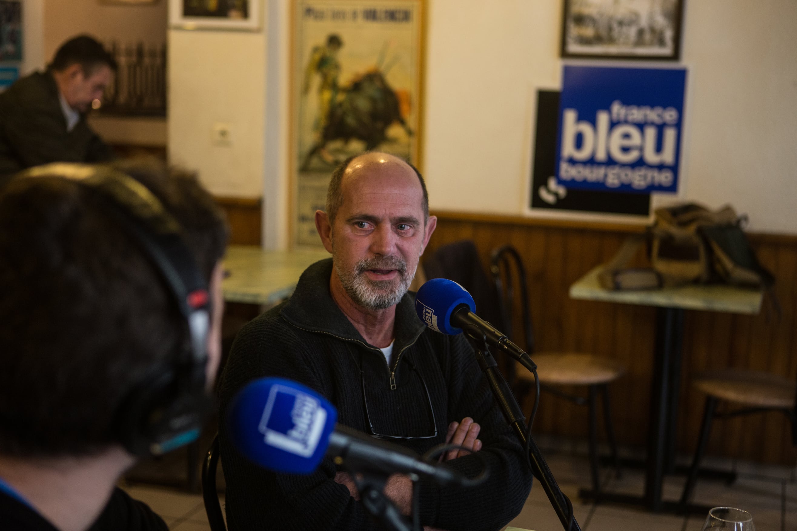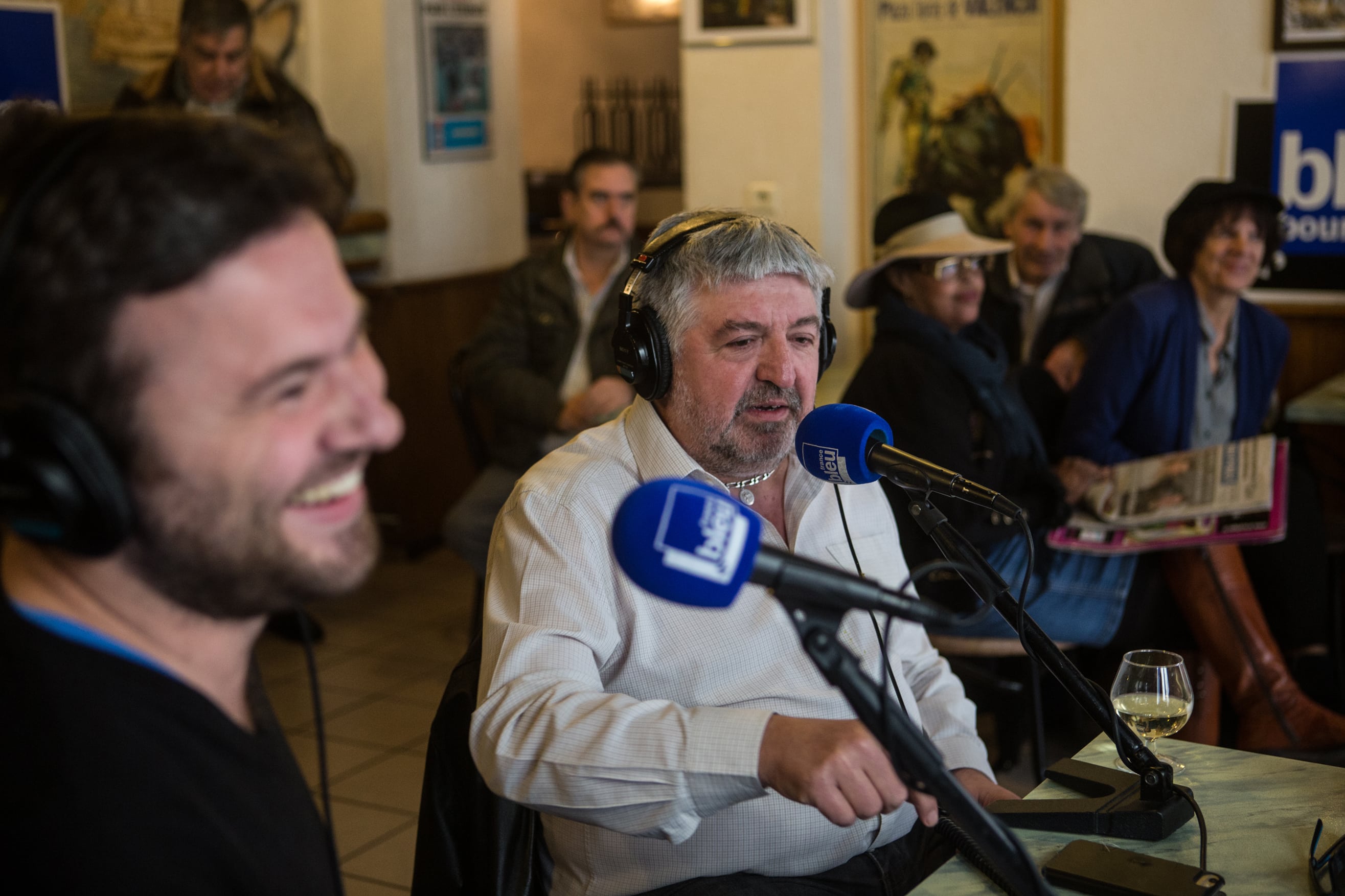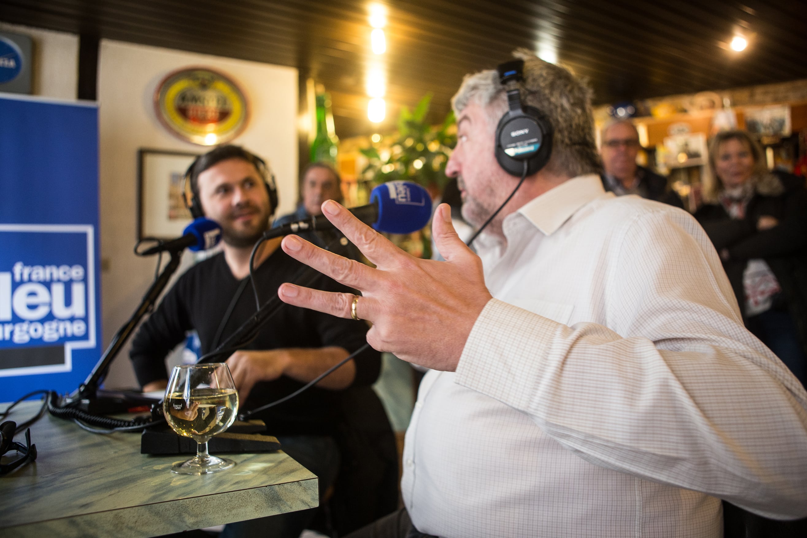 Mais avant cela, place au Café des Bourrus, la messe radiophonique sans langue de bois servie chaque week-end sur les ondes de France Bleu Bourgogne. Assis à une table du bistrot, les deux piliers de l’émission se félicitent de ce nouveau décor in-situ complètement en phase avec le ton gouailleur revendiqué de leur rendez-vous hebdomadaire.