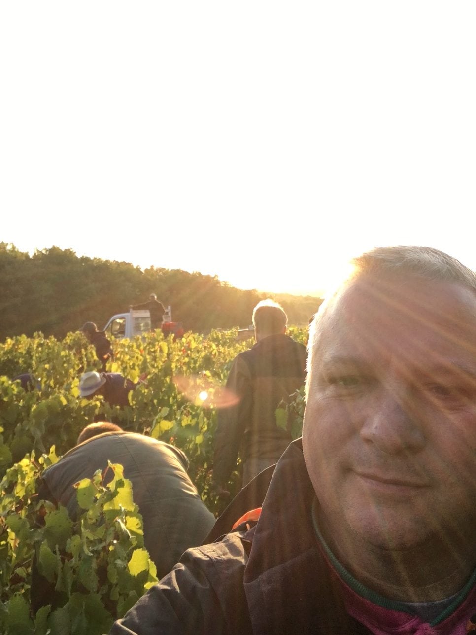 Chez Gouffier, depuis que Jérôme, le fondateur du domaine, est parti déguster les divins nectars du ciel, on commence tôt. Et dans la bonne humeur. Les anciens vendangeurs côtoient les nouveaux a qui ils refileront le virus. Et les nouveaux deviendront anciens à leur tour… J’en veux pour preuve que je vendange ce samedi avec Camille, 18 ans. La fille d’une “fille” avec laquelle j’étais au collège ! Hé oui, je rentre officiellement dans la case vendangeur expérimenté. Ou “vieux”, pour les jeunes. Cela me fait penser à Laurent Perrachon, un vigneron du Mâconnais, qui a vu deux Suédoises débarquer pour les vendanges trente ans après leur maman respective. Nos vignobles sont décidément vecteurs de belles histoires.