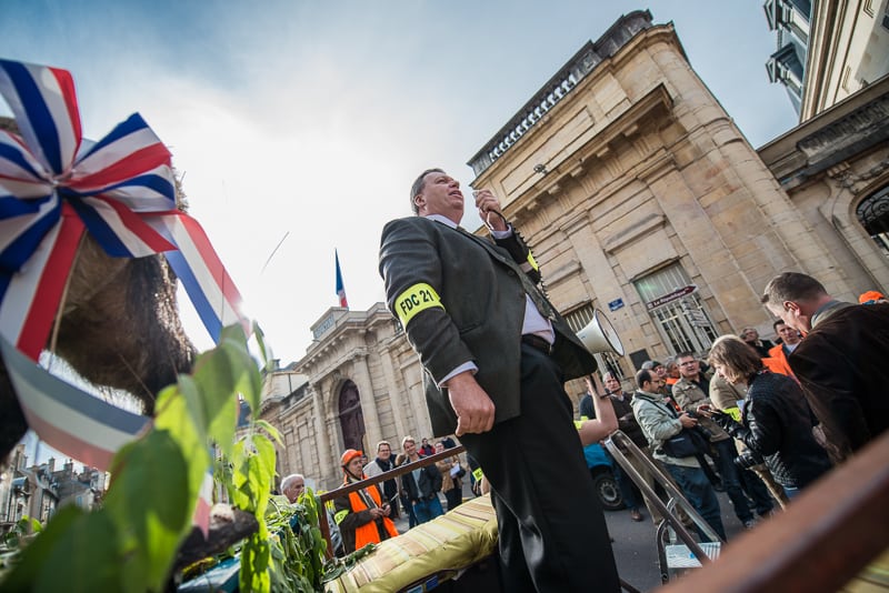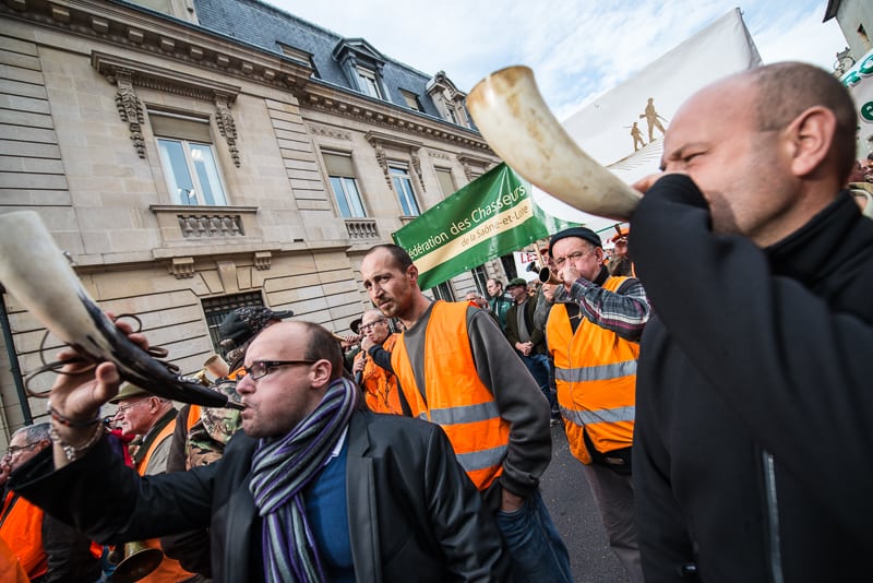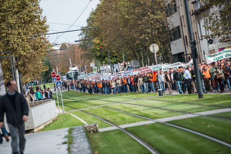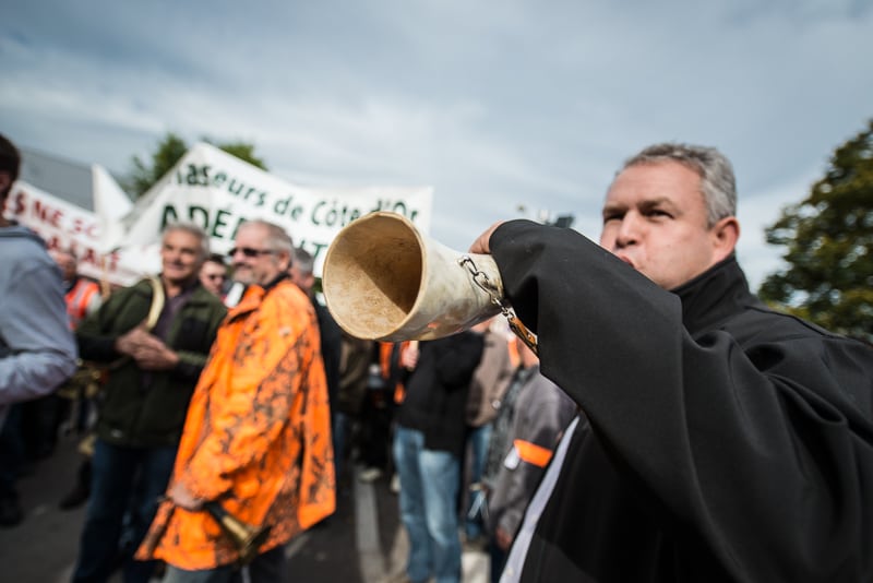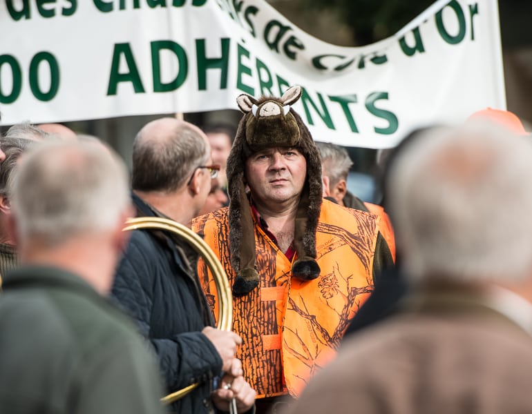 Interdiction d’agrainer (sur les 4/5èmes du département) et mainmise de l’administration sur la gestion sanitaire du gros gibier ont eu raison du mécontentement des chasseurs… ils doivent payer aujourd’hui une note salée de 7,2 millions d’euros. Contre cette situation, près de 2000 d’entre eux étaient dans les rues de Dijon cet après-midi… de façon pacifique, mais avec beaucoup de bruit sur leur passage.