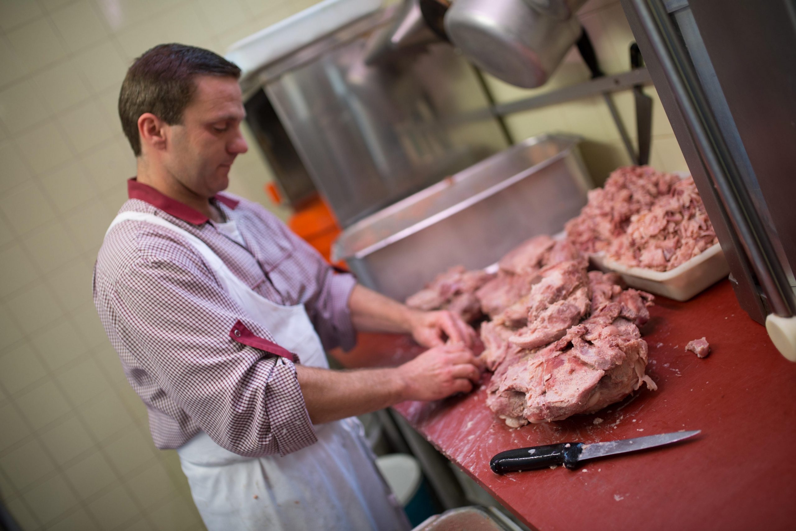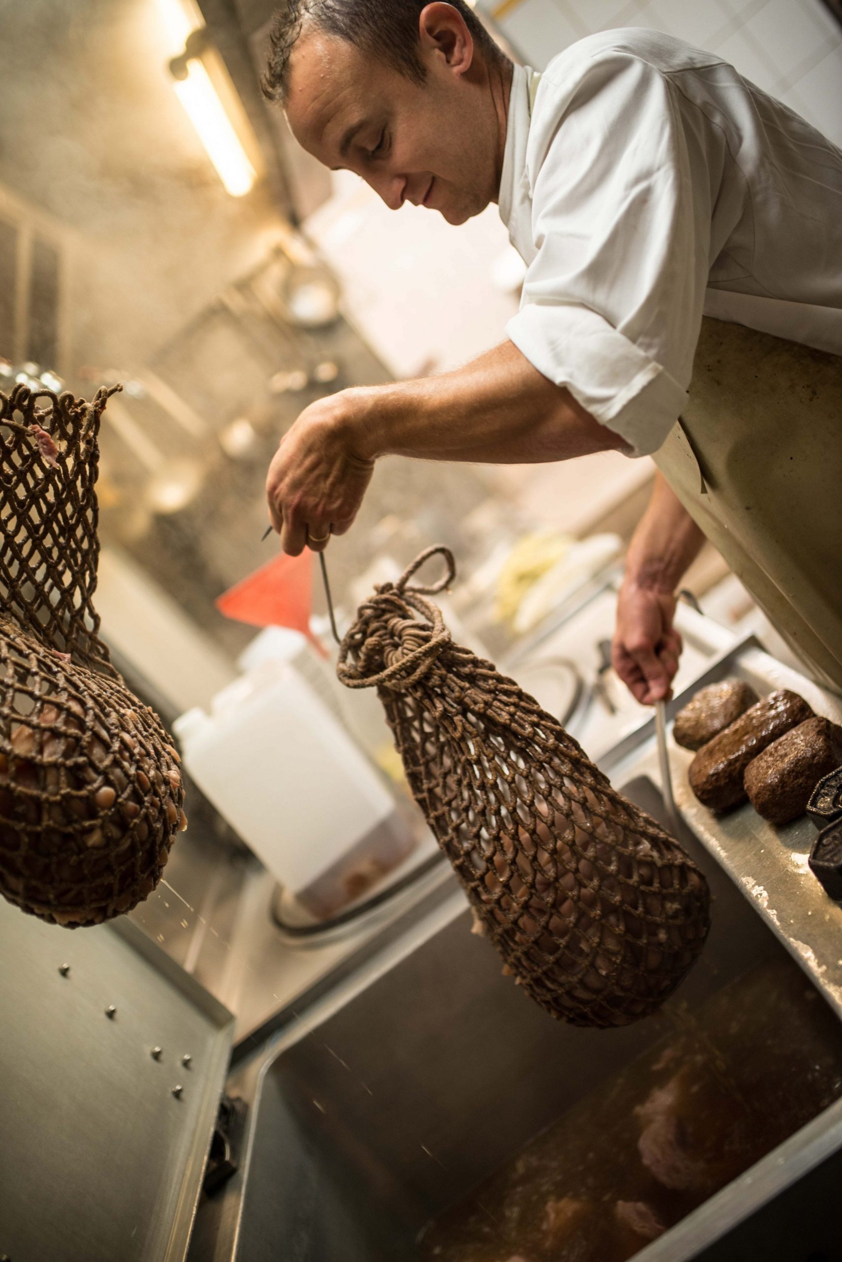 Ce matin-là, le charolais arrive de chez M. Seguin, éleveur de la Roche en Brénil (21), Jérémy commence son apprentissage, tandis que Raphaël met la touche finale et persillée à son jambon. En professionnel avisé et fin observateur de la gourmandise au quotidien, Didier constate un rajeunissement de sa clientèle. Comme quoi, malgré McDo et consorts, il ne faut point désespérer !