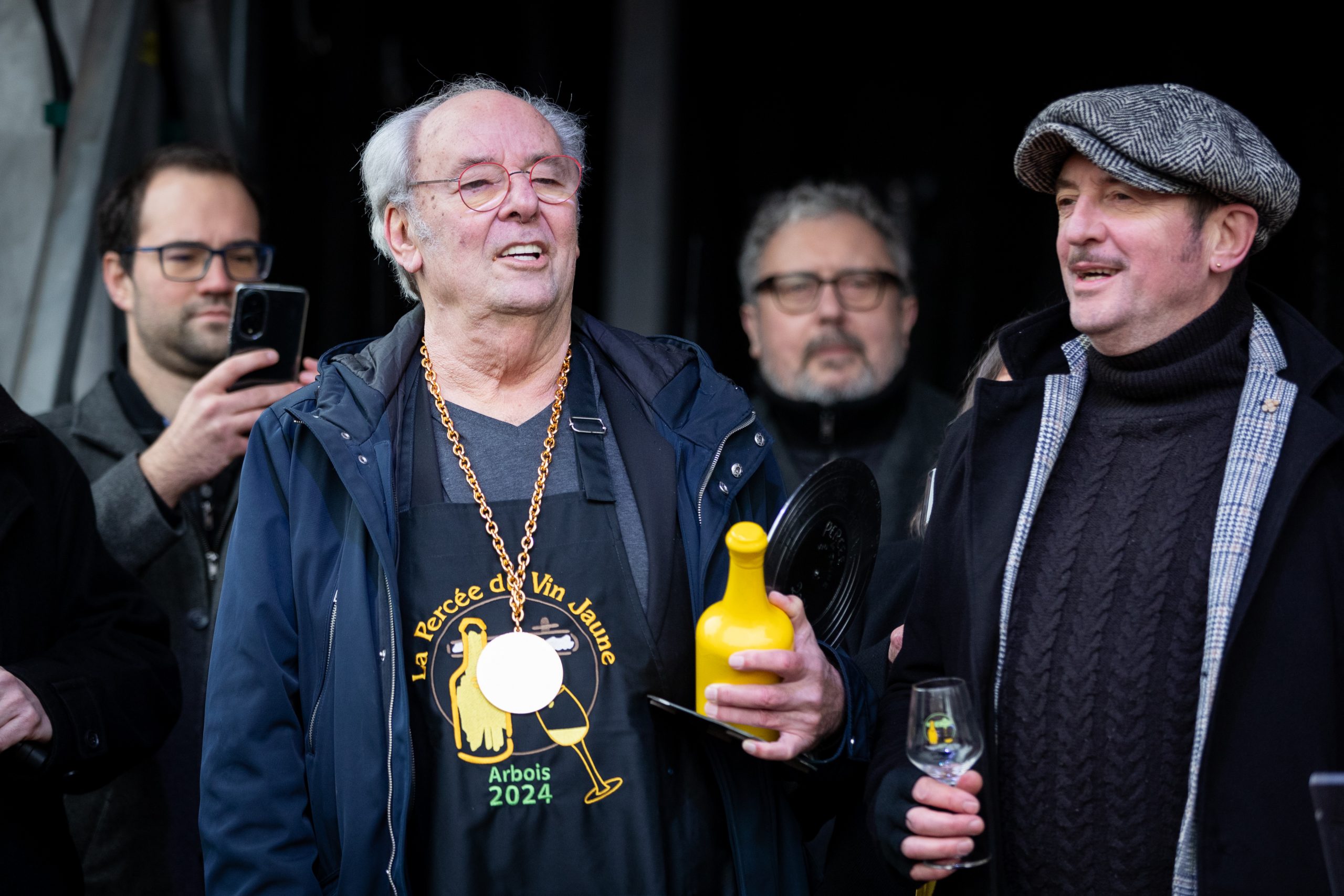La capitale des vins du Jura a fêté son or jaune comme il se doit, les 3 et 4 février. « C’était une très belle Percée du vin jaune. La météo était clémente et il y avait une superbe ambiance. », souligne Olivier Badoureaux. Le directeur du comité interprofessionnel des vins du Jura est un homme heureux, ce mardi 6 février. Pour cause, l’événement a battu son plein. Près de 32 500 amoureux de vins du Jura se sont réunis à Arbois, le week-end dernier, pour déguster le fruit de la récolte de 2017. Nageant dans le brouillard jurassien, Maxime Le Forestier a procédé à la traditionnelle mise en perce devant des milliers de personnes. Le chanteur de 74 ans était le parrain de cette 26e édition, accompagné de quelques invités de renom comme le dijonnais Yves Jamait (voir diaporama ci-dessus).