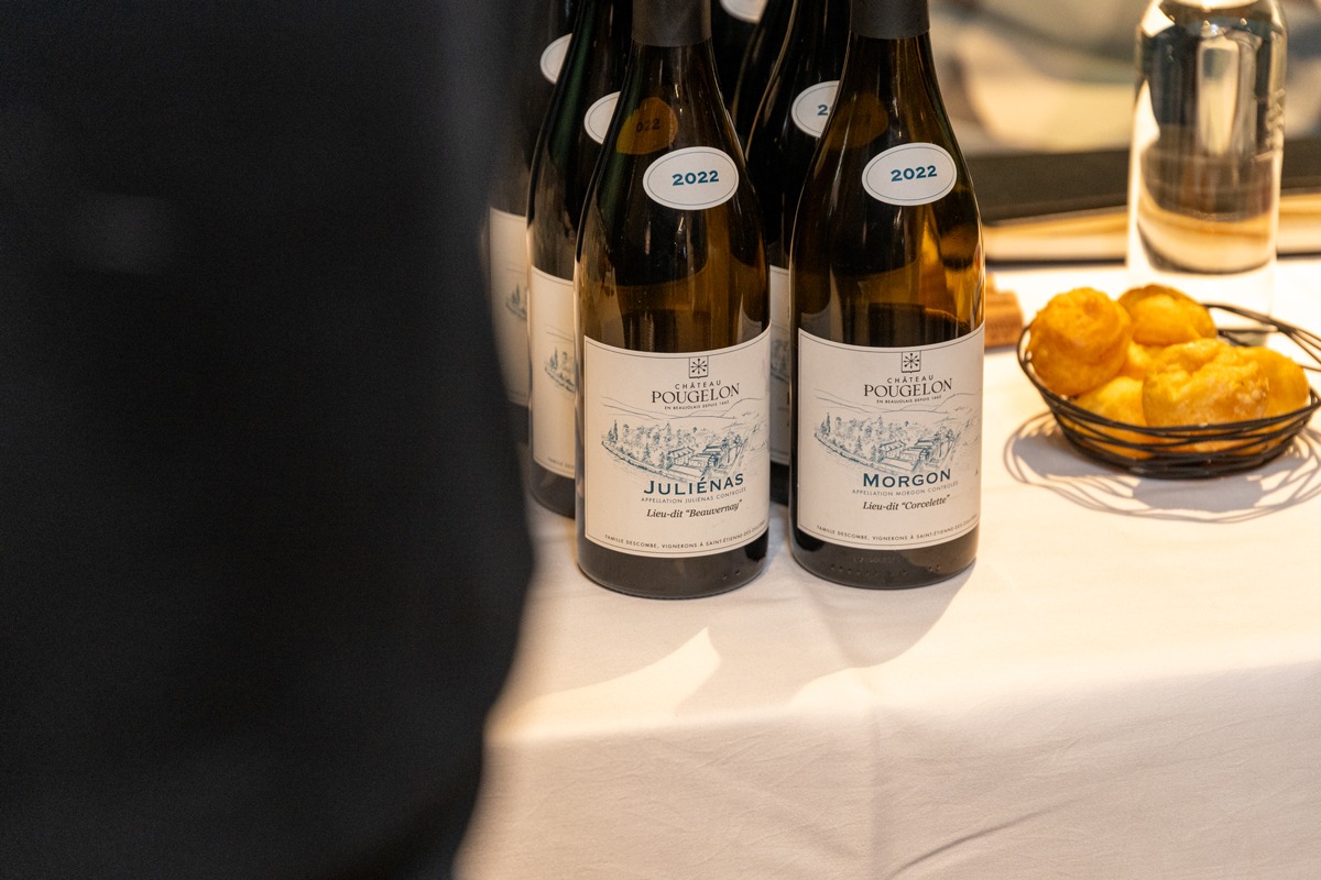 Ses nobles origines remontent au XVIIe siècle. Le château de Pougelon ne fut pas seulement un repaire de la bourgeoisie lyonnaise planté au pied du Mont Brouilly. Il est intimement lié à l’essor du vignoble, notamment grâce à la famille Lacroix qui participa à la fondation de la cave coopérative locale. Les Descombe, que l’on ne présente plus en Beaujolais, en sont désormais la troisième famille propriétaire. Aux côtés de son mari Kevin et de son frère François, Marine Descombe tient la barre d’un domaine totalement modernisé, sur la voie du bio. Le vignoble de 45 hectares était initialement constitué de Beaujolais Villages entourant la propriété sur un beau terroir granitique, avant de s’étendre sur d’autres « bijoux de famille » (Brouilly, Fleurie, Morgon et Juliénas).