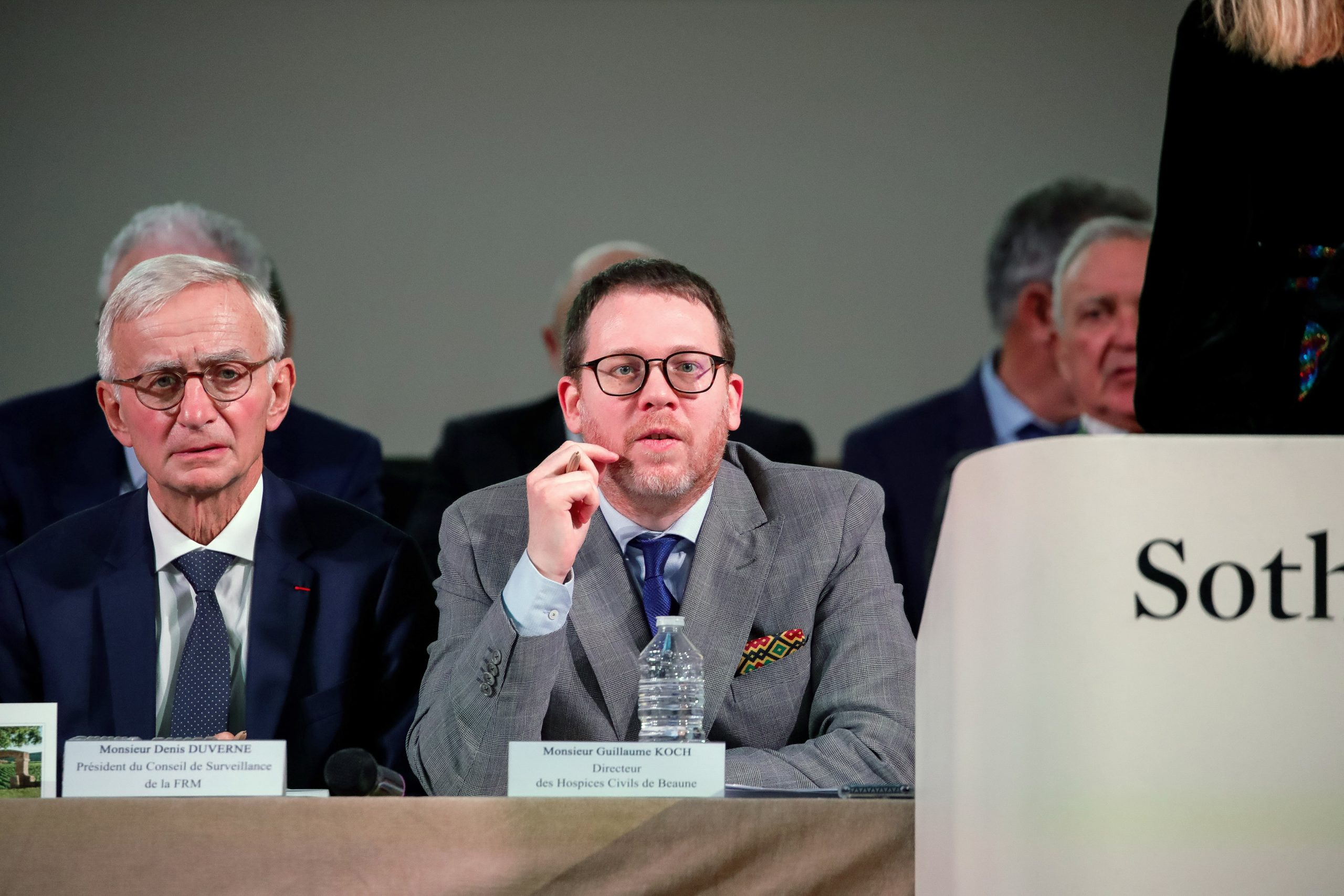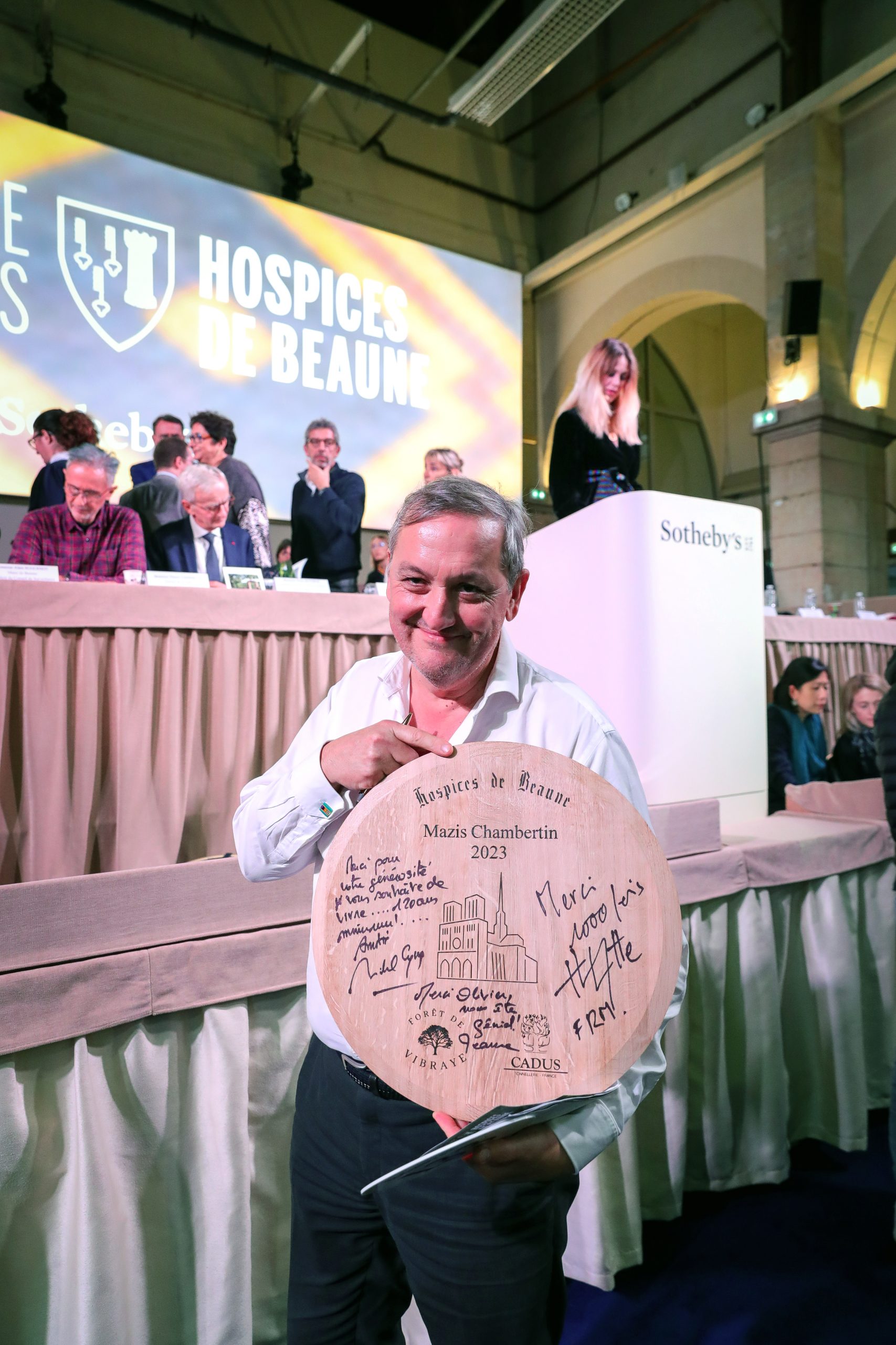 La 163e Vente des vins des Hospices de Beaune en 21 imagesDijonBeaune.fr20/11/2023 Avec un résultat de 23,2 millions d’euros, la 163e Vente des vins des Hospices de Beaune est la deuxième plus prolifique de l’histoire. (Re)vivez l’événement en photos. Olivier Poelaert (Château de Couches, Cave de Mazenay) est l’heureux propriétaire de la pièce de charité. © Baptiste Paquot / DijonBeaune.fr Olivier Poelaert (Château de Couches, Cave de Mazenay) est l’heureux propriétaire de la pièce de charité. © Baptiste Paquot / DijonBeaune.fr Quelques minutes avant le début de la Vente des vins, Michel Cymès a signé quelques autographes. © Baptiste Paquot / DijonBeaune.fr Thierry Lhermitte, président de la Vente des vins. © Baptiste Paquot / DijonBeaune.fr © Baptiste Paquot / DijonBeaune.fr © Baptiste Paquot / DijonBeaune.fr Albéric Bichot, acheteur n°1 de la Vente des vins des Hospices de Beaune. © Baptiste Paquot / DijonBeaune.fr © Baptiste Paquot / DijonBeaune.fr © Baptiste Paquot / DijonBeaune.fr Denis Brogniart, parrain du semi-marathon de Beaune, était présent sous la halle avec son ami Stéphane Guidot, organisateur du semi. © Baptiste Paquot / DijonBeaune.fr © Baptiste Paquot / DijonBeaune.fr © Baptiste Paquot / DijonBeaune.fr © Baptiste Paquot / DijonBeaune.fr Frédéric Drouhin était accompagné du Ballon d’Or Jean-Pierre Papin. © Baptiste Paquot / DijonBeaune.fr Christophe Quéant, chef du Carmin. © Baptiste Paquot / DijonBeaune.fr © Baptiste Paquot / DijonBeaune.fr Jean-Claude Bernard, propriétaire de l’hôtel Le Cep*****. © Baptiste Paquot / DijonBeaune.fr Charles Lamboley, directeur marketing de Nuiton-Beaunoy. © Baptiste Paquot / DijonBeaune.fr Le chef murisaltien Takashi Kinoshita était présent sous la halle de Beaune. © Baptiste Paquot / DijonBeaune.fr Guillaume Koch, directeur des Hospices civils de Beaune. © Baptiste Paquot / DijonBeaune.fr