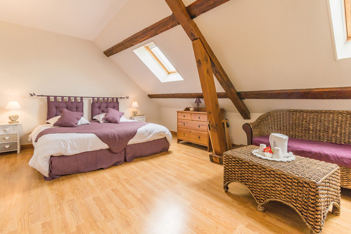 Alexandra s’est passionnée pour l’histoire de la bâtisse. En fouillant dans les archives municipales, en écoutant les anciens du village, elle a reconstitué ses différentes vies : un relais de diligence au XVIIIe siècle, une auberge avec infirmerie dans les années 1900 (voir photo d’archives), une station-service… Et, depuis maintenant trois générations tout de même, un lieu de villégiature. Le gîte, mitoyen à l’habitation de la petite famille, offre au rez-de-chaussée un grand séjour ouvert avec poutres et pierres apparentes : salle à manger, cuisine équipée et salon confortable. N’en jetez plus. Les extérieurs ont tout de même été refaits par un jardinier-paysagiste, « car il est vrai que le terrain était un peu en friche », concède du bout des lèvres Alexandra, tout sourire quand les hôtes la complimentent : « Ça a changé ! »