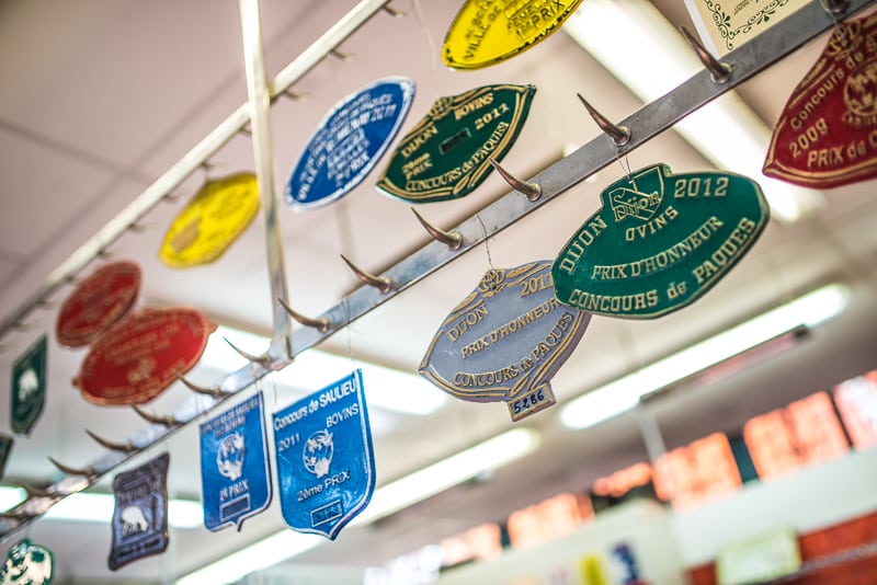 Mais je suis tout d’abord très fier de défendre ces produits. Et ce n’est parce que ce sont des abats que je dois faire une sélection au rabais… comme certains pourraient le croire. Quand je me déplace aux abattoirs de Beaune ou de Venarey-les-Laumes, j’essaye toujours de choisir les meilleures pièces, car on a de véritables épicuriens à Dijon et sur toute la Côte des vins. La semaine dernière un vigneron est venu chercher de l’andouille pour un grand repas de famille. En une semaine, 50 kg de ce produit est parti directement dans l’assiette du consommateur. Ca fait toujours plaisir. Moi, les tripes, je défends leur bifteck tous les jours !