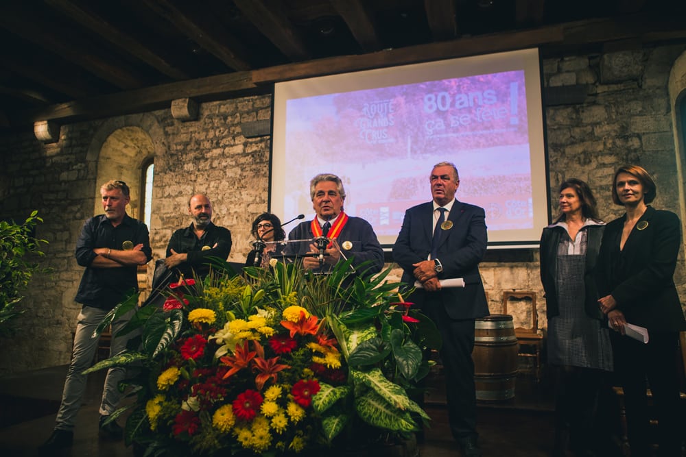 L’occasion pour Vincent barbier, Grand Maitre des Chevaliers du Tastevin, de rappeler l’histoire de cette route touristique née le 14 mai 1937, soit trois ans après la confrérie et un an avant la première Saint-Vincent tournante : « Trois créations au service de la promotion du vin de Bourgogne, qui ont fait preuve de modernité autant que d’initiative, à une époque où la crise sévissait sur le marché du vin. En ce sens, la route comme la confrérie ont été à leur manière les précurseurs de l’œnotourisme. »  Et François Sauvadet, président du Département de Côte-d’Or, d’insister sur « la responsabilité du conseil départemental dans la promotion de ce joyau qu’est la route des Grands-Crus », ainsi que sur « l’importance du maintien des Climats du vignoble de Bourgogne au patrimoine mondial afin de préserver l’âme du territoire tout en l’inscrivant dans son temps ». Et de conclure sur la fameuse citation de l’écrivain bourguignon Gaston Roupnel : « La Bourgogne n’a rien fait de mieux que ce petit coin où elle a réuni ses enchantements et mis dans les vins la générosité tendre de son génie. »