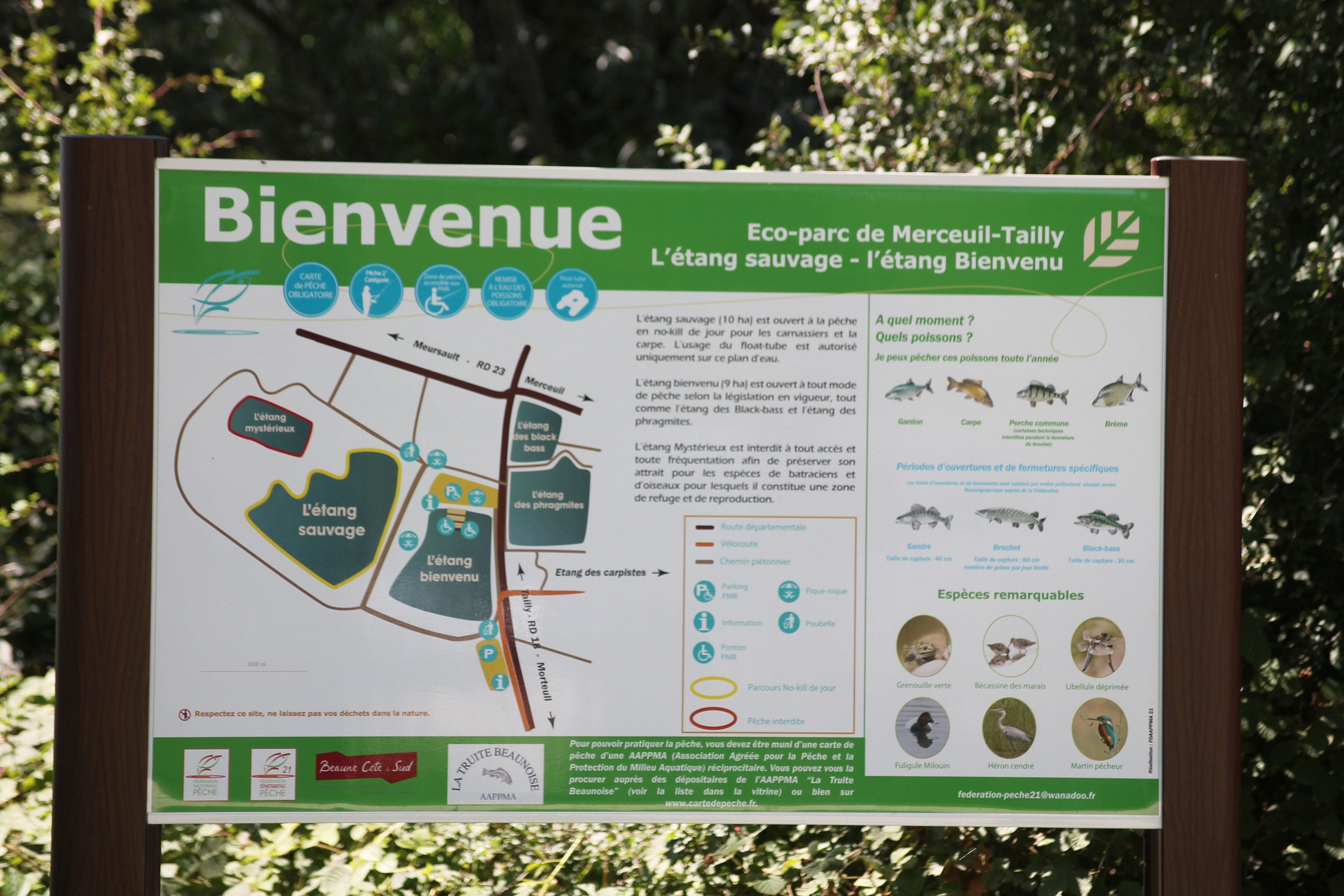 Depuis ces promontoires, il est possible d’observer par exemple les oiseaux qui colonisent les lieux, comme les hérons, les martins pêcheurs et autres foulques. Le site, ouvert tous les jours et en entrée libre, est accessible pour les personnes à mobilité réduite. Il bénéficie d’une signalétique particulièrement efficace. Pour s’y rendre, rien de plus simple. Plusieurs parkings ont été aménagés, le long de la D 23 en direction de Merceuil ou de la D 18 en roulant vers Demigny. Et rien que de traverser les étangs en voiture, à l’ombre, on mesure déjà l’attrait du lieu.